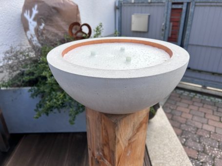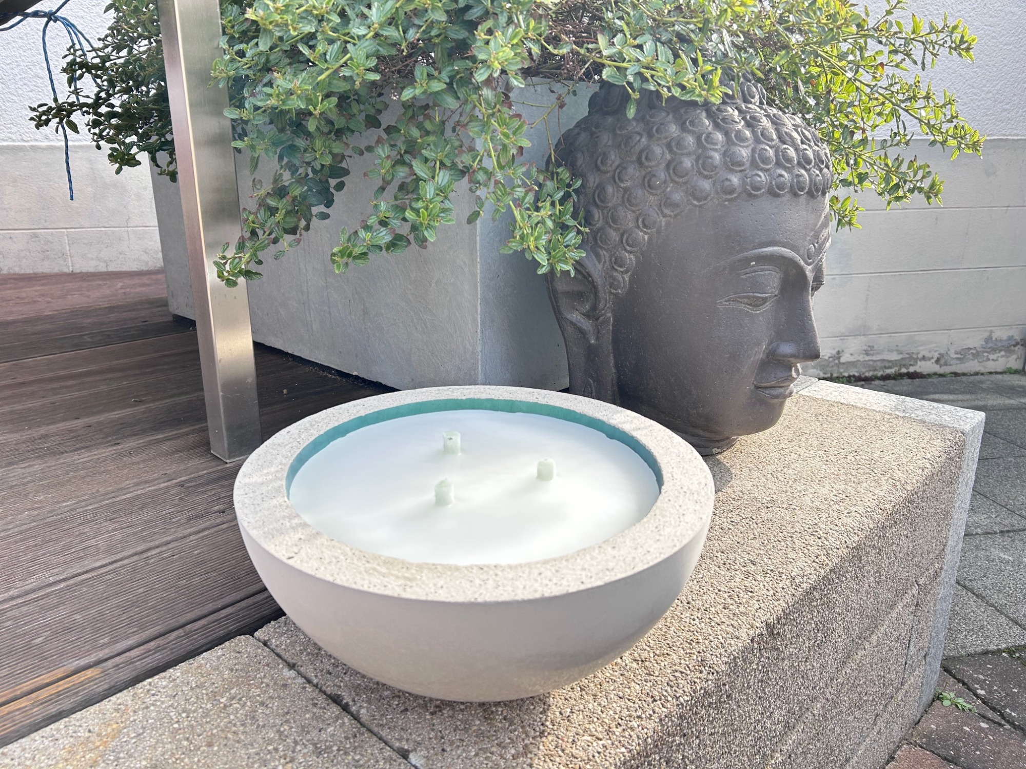 Die Schalen sind für den Außenbereich geeignet. Die Kerze kann immer wieder mit Wachsresten oder Wachsgranulat nachgefüllt werden. Ideal zum Dekorieren im Garten oder zum Verschenken
